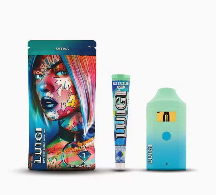 Blue Razz Lime Luigi Disposable Vape pairs sweet blue-raspberry candy with a zesty lime tang—bright, tart inhale and crisp exhale—delivered via a USB-C rechargeable, ceramic-coil device with draw activation; expect an uplifting, focused head high and about 1,000–1,200 puffs. THC values for Blue Razz Lime Luigi Disposable Vape is around 82–83%. Encased in impact-protected freshness vaults and shipped inside ultra-discreet courier boxes that resemble everyday personal-care parcels